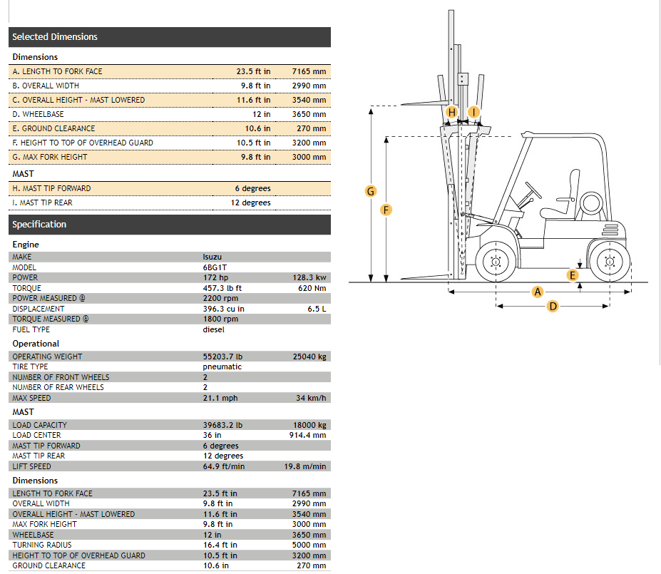 Xe nâng TCM FD180V có sức nâng 18 Tấn