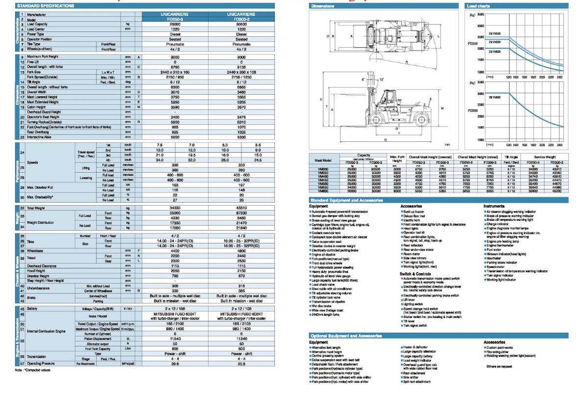 - Load capacity range : From 25 ton to 30 ton (Load center : 1220mm)